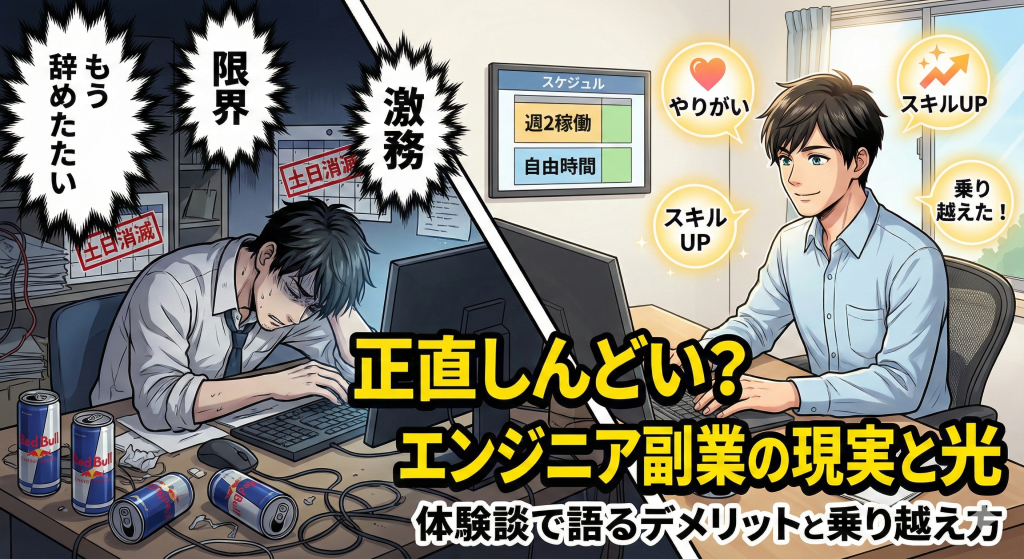 エンジニアの副業は、最初は本業との両立に慣れず「大変だな…」と思う瞬間があるかもしれません。