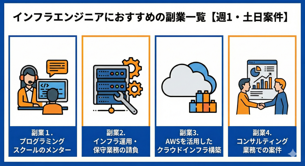 インフラエンジニアにおすすめの副業一覧【週1・土日案件】