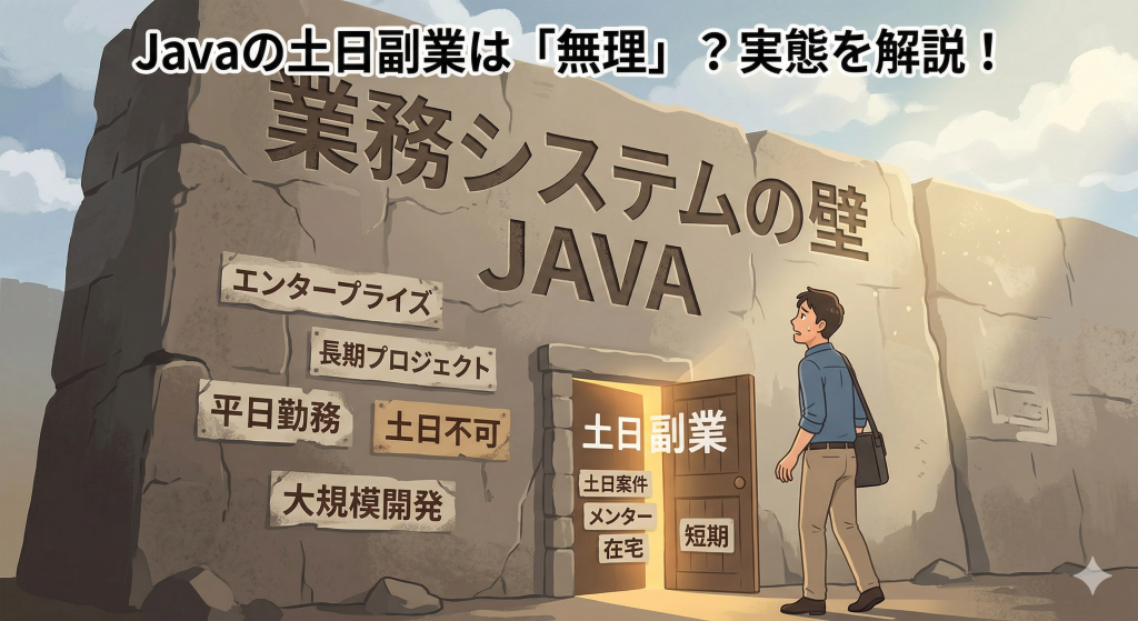 SIerや社内SEとして働く会社員にとって、平日の稼働が必須なJava案件はハードルが高く、「無理だ」と諦めてしまう方も少なくありません。