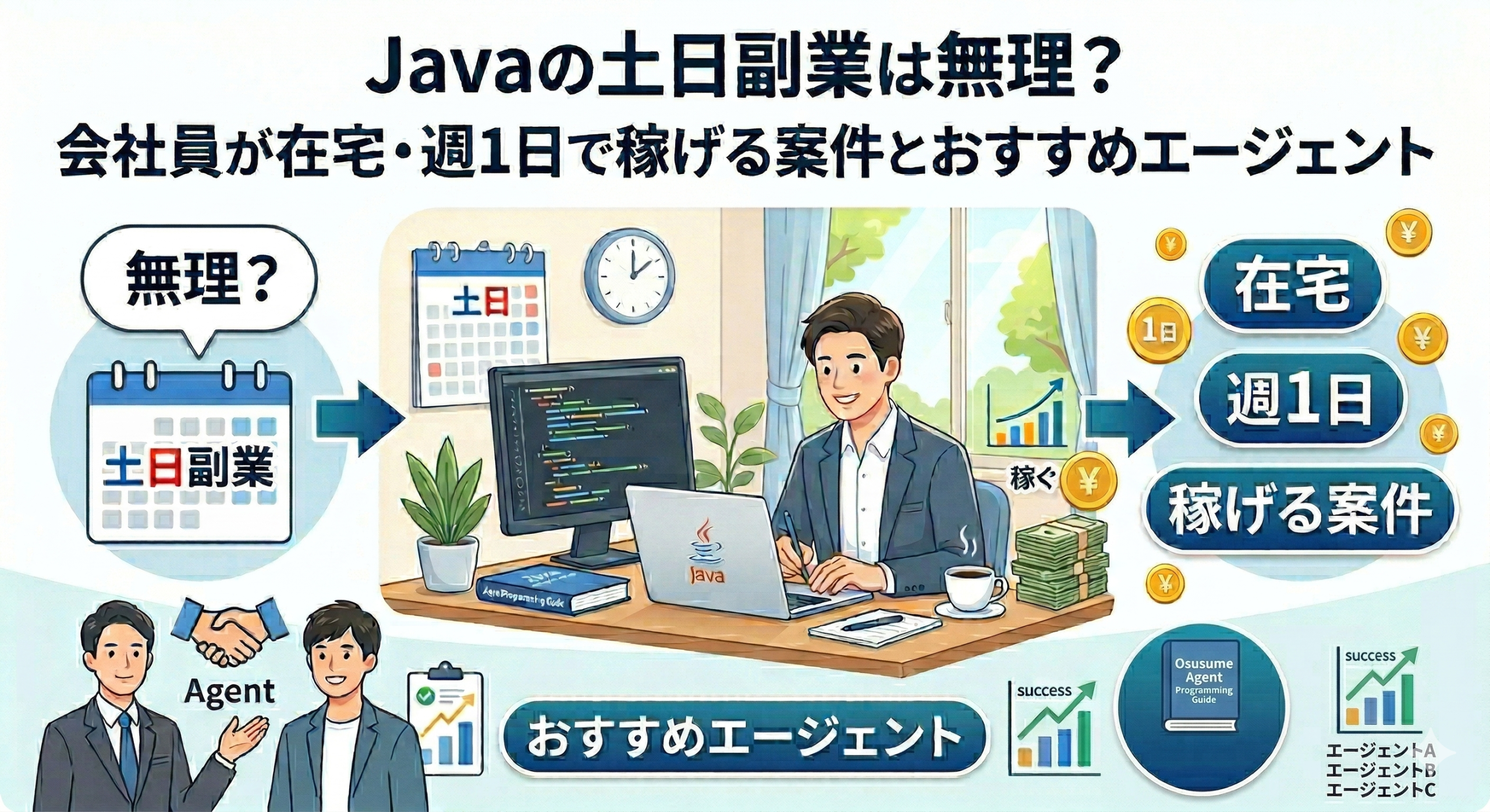 しかし、探し方や案件の選び方を変えれば、Javaスキルを活かして土日やスキマ時間に在宅で稼ぐことは十分に可能です。
