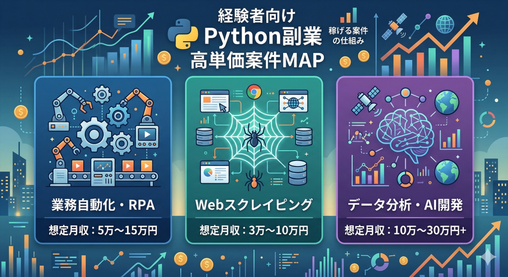 エンジニア経験者がPython副業で稼げる案件の種類と単価相場
