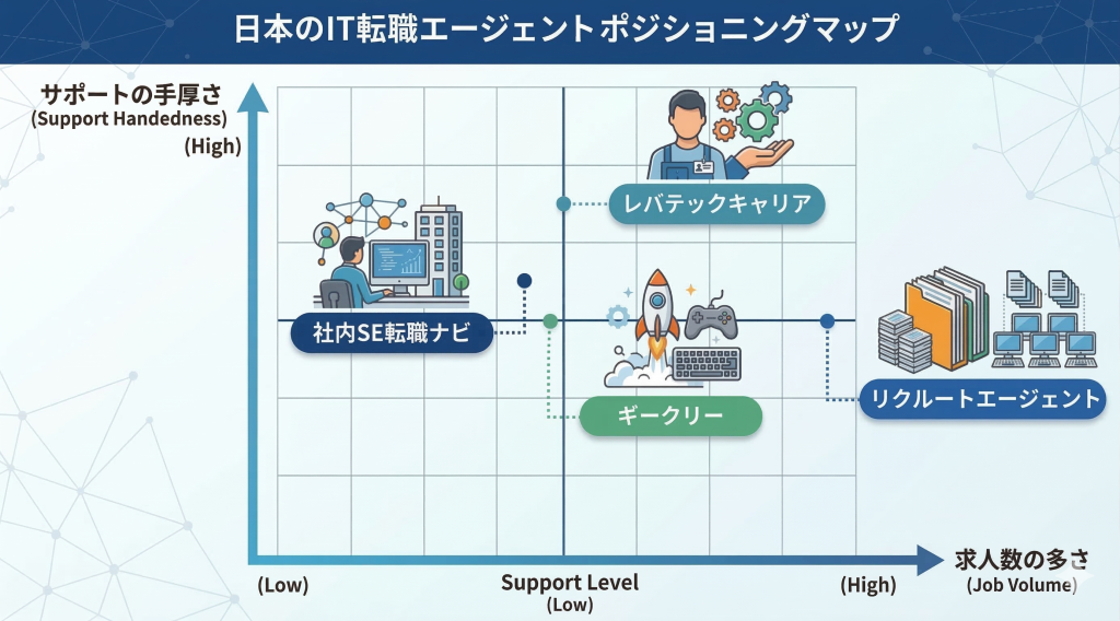 ただし、社内SEは全体の求人数が少ないため、地方での勤務を希望する方や、なるべく多くの選択肢から選びたい方は、求人規模が最大の「総合型エージェント」を併用するのが成功の秘訣です。