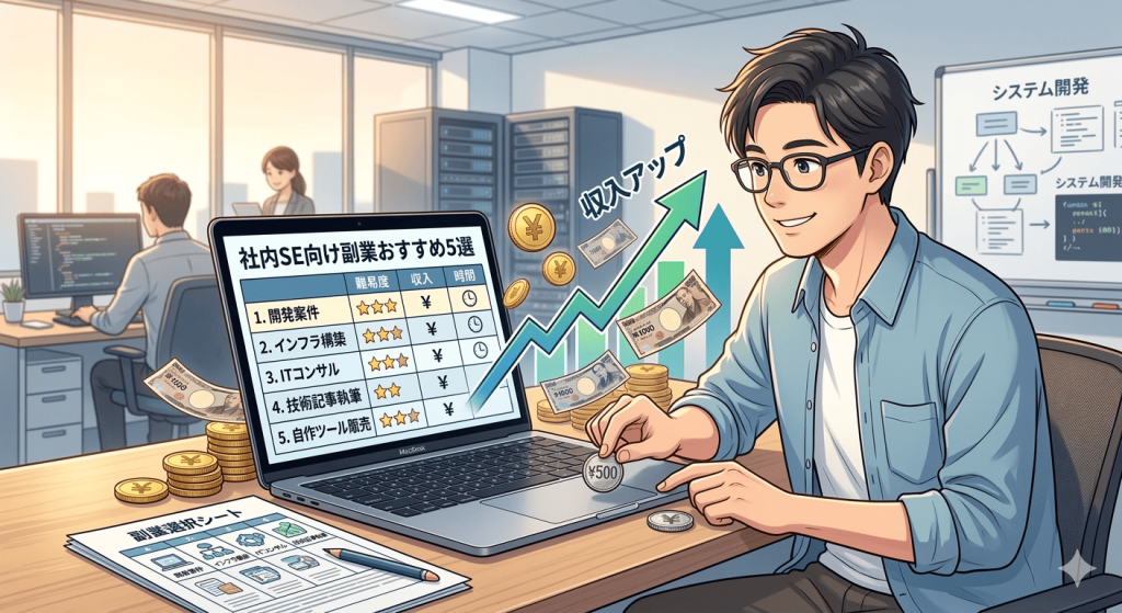 社内SE向け副業おすすめ5選!難易度と収入を徹底比較