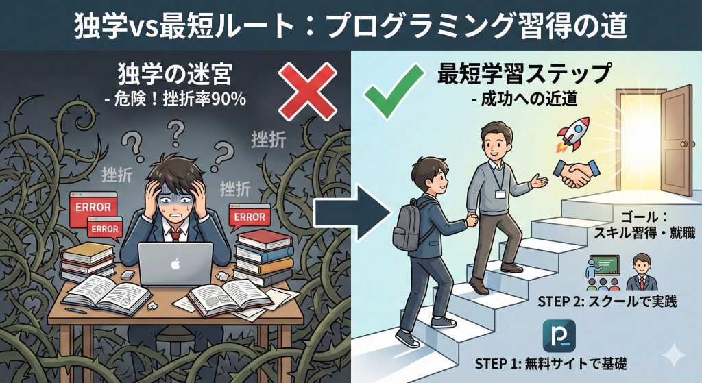• 最短ルートでの習得法:「独学は9割挫折する」現実を踏まえ、学生ならではの特権(時間や学割)を使って賢く学ぶ具体的な手順