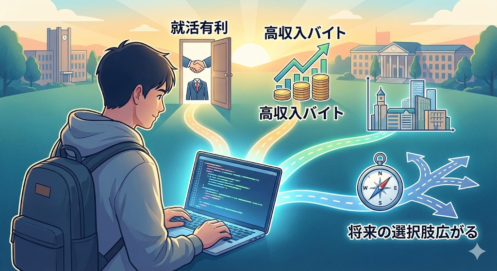 • なぜ今やるべき?:就活での圧倒的有利さや高単価バイトなど、大学生が学ぶ3つのメリット
