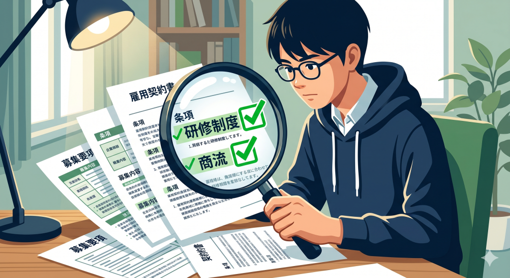 少なくとも1〜3ヶ月の開発研修があり、プログラミングやSQL、ネットワークの基礎を学べる環境があるかを確認してください。